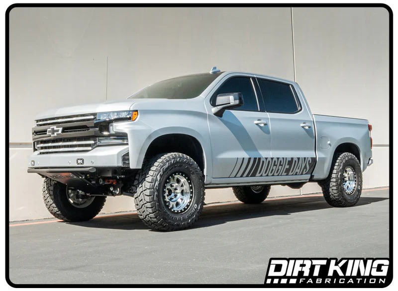 The Dirt King prerunner bumper is a perfect addition to any off road Silverado 1500. It gives the front end that finishing touch as well as providing a strong structure to withstand the punishment seen off roading. The bumper is CAD designed and constructed with DOM tubing. We offer several options allowing you to customize it to your preferences. The standard bumper comes raw metal with an aluminum Dirt King skid plate. This bumper bolts into the factory holes on the frame and requires the factory bumper to be trimmed.